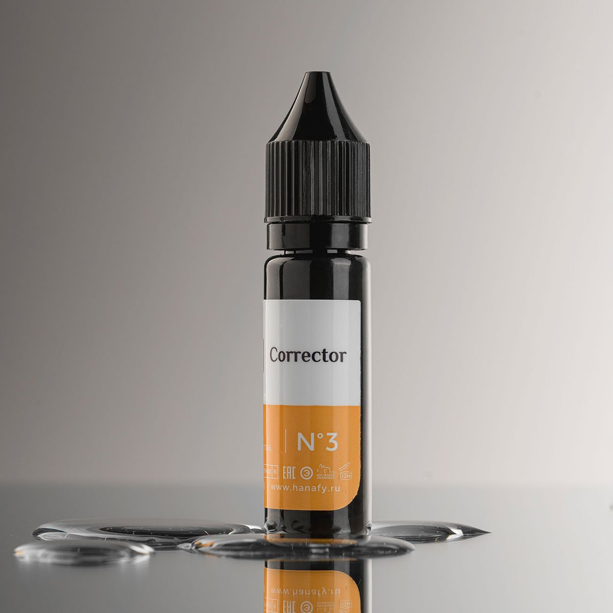 When creating the brow pigment palette, Olga Hanafi gave shade No. 2 Dark Blonde, which has a serious olive base, the ability to cope with the overlap of reddish, pinkish eyebrows. However, its “oliveness” was not always enough, so we released Corrector No. 3. An olive corrector with a pronounced greenish tint is not only suitable for covering unwanted eyebrow shades, but can also be used for shading on the eyelids.